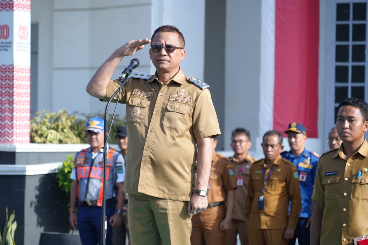 Wakil Wali Kota Bima, Feri Sofiyan, SH, memimpin Apel Gabungan yang dirangkaikan dengan Peringatan Hari Bhakti Pekerjaan Umum (PU) ke-80 dan kegiatan Penandatanganan Komitmen Anti Korupsi Tahun 2025 yang berlangsung di Halaman Kantor Wali Kota Bima, Senin 1 Desember 2025.