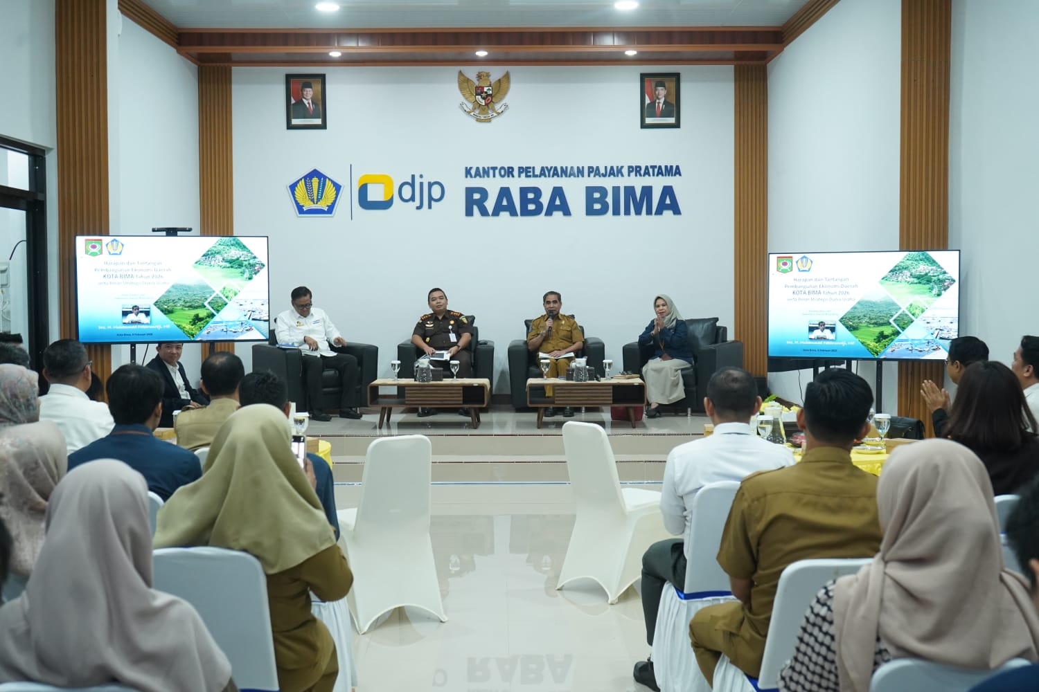Sekretaris Daerah Kota Bima, Drs. H. Muhammad Fakhrunraji, ME., menghadiri Forum Dialog yang bertajuk “Strategi Ekonomi, Hukum, dan Pajak” yang diselenggarakan oleh Kantor Pelayanan Pajak (KPP) Pratama Raba – Bima. Kegiatan ini diadakan di Aula Tambora KPP Pratama Raba - Bima, dengan dihadiri oleh Kepala BPKAD Kota Bima, Kabupaten Bima, dan Kabupaten Dompu, beberapa Kepala OPD yang mendapat undangan, Kejari Raba - Bima, perwakilan Kemenkeu 1 Bima dan Kepala BPS Kota Bima, serta para pelaku usaha yang ada di Kota Bima. Senin, (9/2/2025).