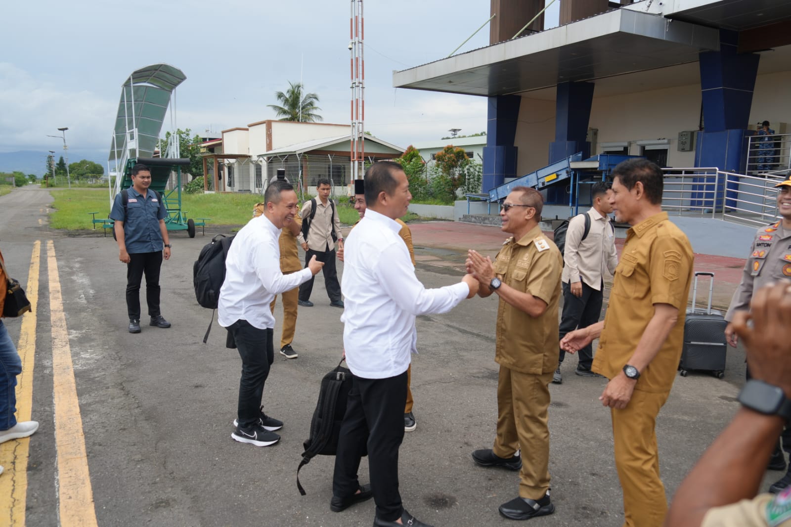 Penjemputan tersebut turut dihadiri Sekretaris Daerah Kota Bima, Asisten II Setda Kota Bima, Plt. Kepala Bagian Protokol dan Komunikasi Pimpinan (Prokopim), serta sejumlah unsur Forum Koordinasi Pimpinan Daerah (Forkopimda) dan pimpinan lembaga vertikal.