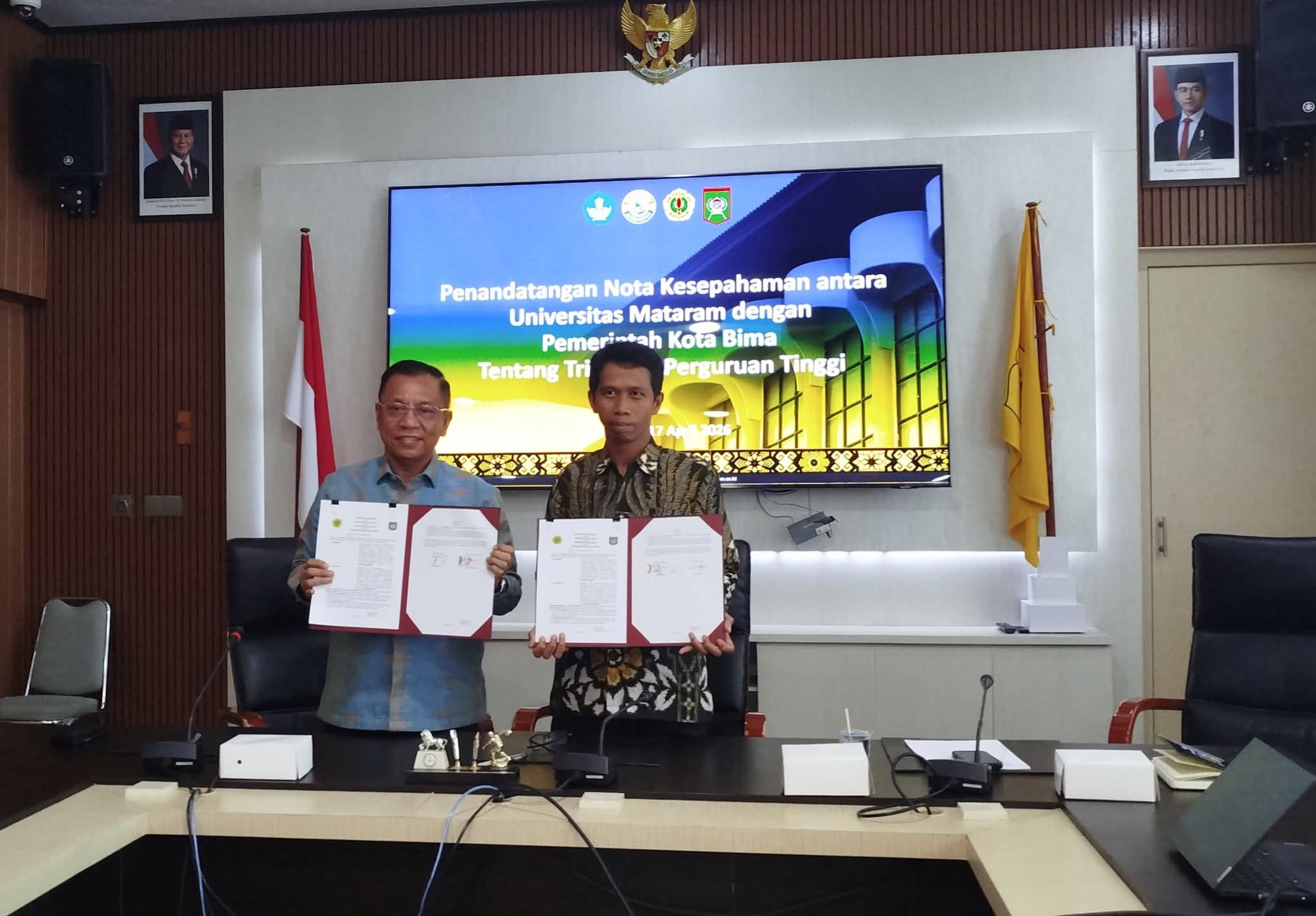 Pemerintah Kota Bima resmi menjalin kerjasama dengan Universitas Mataram melalui penandatanganan nota kesepahaman (MoU) tentang pelaksanaan Tri Dharma Perguruan Tinggi, Jumat (17/04/2026).